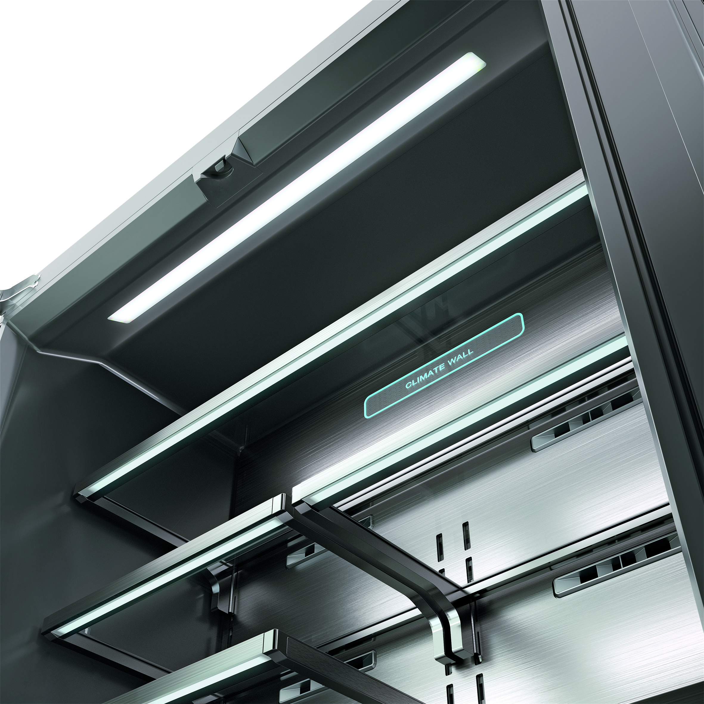 La linea Built-In pannellabile e quella Easy Fit dalle ante in acciaio inox si declinano nelle soluzioni Quattro Porte e Side-by-Side mentre il modello French Door arricchisce la proposta della linea Hybrid, free standing ma dalle performance comparabili a un built-in, grazie all’esclusivo scarico frontale dell’aria di raffreddamento del condensatore brevettato GRF e delle cerniere a filo. Tutti i prodotti sono disponibili nelle finiture interne Classical (bianco) e in quella Ultimate di colore scuro anche nelle porte interne, che è dotata di automatic ice maker e di ripiani a cremagliera illuminati.