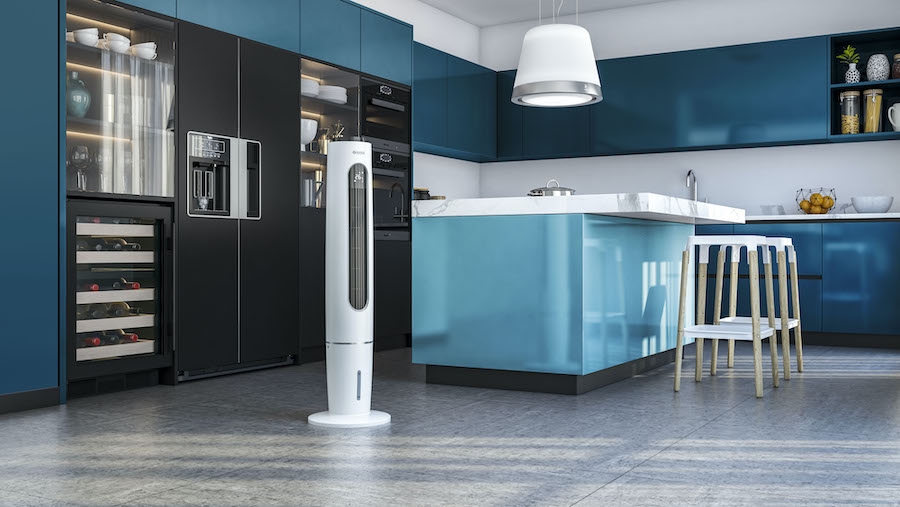 Per l’estate 2020 Olimpia Splendid rinnova quasi completamente la gamma dei raffrescatori Peler, presentando sul mercato quattro modelli (in foto, Peler Tower) che sostituiscono i precedenti e si affiancano al Peler 20. Le novità si distinguono per l'estetica black&white che li rende essenziali nelle forme e distintivi nei colori. Con l'obiettivo di migliorare l’esperienza dei consumatori presentano, inoltre, una tecnologia user-friendly, con impostazioni che si possono gestire attraverso un display touchscreen e una manutenzione molto semplice grazie alle taniche estraibili che si possono riempire anche dall'alto. Infine, i nuovi Peler sono dotati di ionizzatore integrato, che rende l’aria trattata più salubre. Lo ionizzatore sfrutta infatti un processo chimico naturale per liberare l’aria da particelle di polvere, batteri o polline, favorendone il deposito sulle superfici, dove possono essere facilmente rimosse.