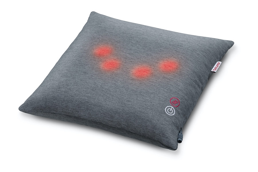 Il cuscino massaggiante Shiatsu MG 135 di Beurer è stato sviluppato ispirandosi al massaggio shiatsu giapponese: dotato di 4 testine con rotazione in coppia (in senso orario e antiorario) e della funzione luce e riscaldamento, è ideale per massaggiare schiena, cervicale, spalle e gambe. In dotazione è compreso un cavo di alimentazione extra lungo, e il rivestimento del cuscino è rimovibile e lavabile in lavatrice. Prezzo consigliato di 79,99 euro.
